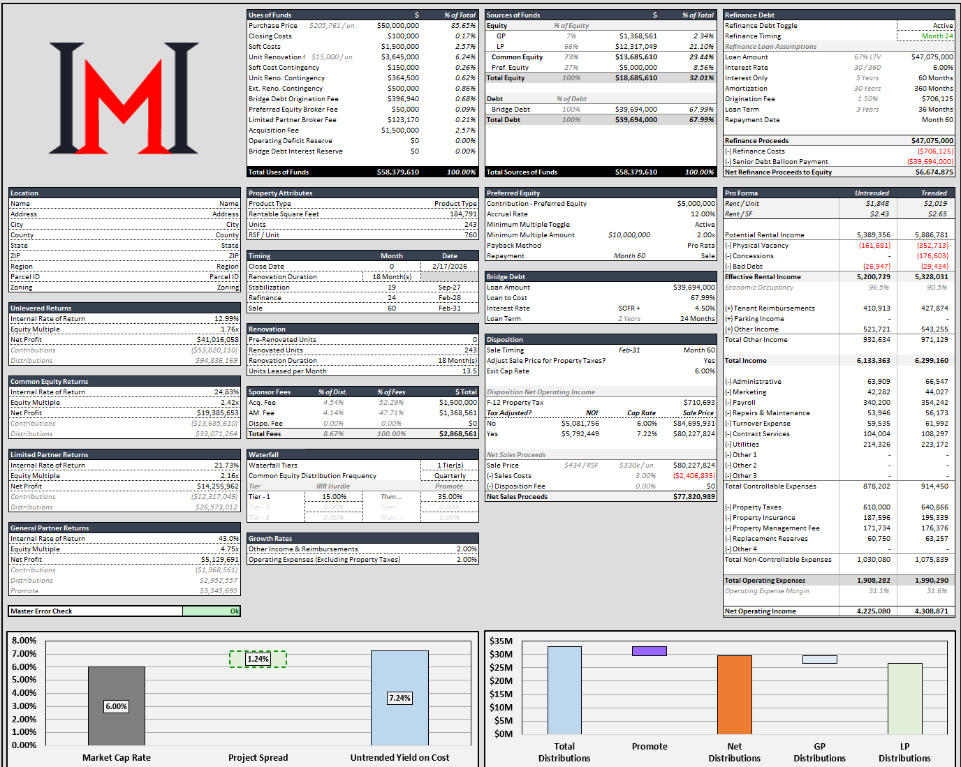 Full Lineup of BOTE Models Waterfall Model - Click Here Free Models Standard Multifamily Acquisition Model - Click Here Advanced Hotel Development Model - Click here Advanced Multifamily Development Model - Click Here Standard Hotel Acquisition Model - Click Here Standard Commercial Acquisition Model - Click Here Advanced Multi-Family Value Add - Click Here